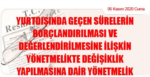 MADDE 1 – 6/11/2008 tarihli ve 27046 sayılı Resmî Gazete’de yayımlanan Yurtdışında Geçen Sürelerin Borçlandırılması ve Değerlendirilmesine İlişkin Yönetmeliğin 1 inci maddesi aşağıdaki şekilde değiştirilmiştir.