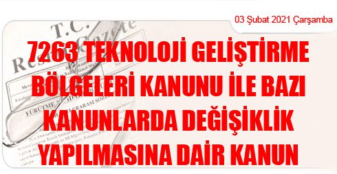 TEKNOLOJİ GELİŞTİRME BÖLGELERİ KANUNU İLE BAZI KANUNLARDA