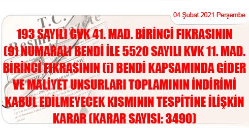 3.2.2021 TARİHLİ VE 3490 SAYILI CUMHURBAŞKANI KARARININ EKİ