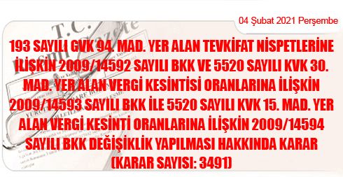 3.2.2021 TARİHLİ VE 3491 SAYILI CUMHURBAŞKANI KARARININ EKİ