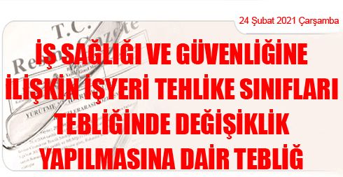 İŞ SAĞLIĞI VE GÜVENLİĞİNE İLİŞKİN İŞYERİ TEHLİKE SINIFLARI