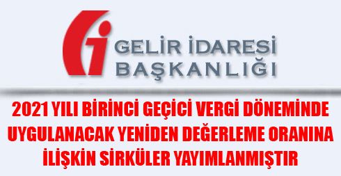 2021 yılı birinci geçici vergi döneminde uygulanacak yeniden değerleme oranı % 10,09 (yüzde on virgül sıfır dokuz) olarak tespit edilmiştir.