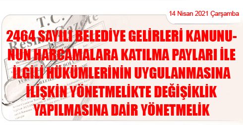 Home»Haberler»2464 Sayılı Belediye Gelirleri Kanununun Harcamalara Katılma Payları ile İlgili Hükümlerinin Uygulanmasına İlişkin Yönetmelikte Değişiklik Yapılmasına Dair Yönetmelik