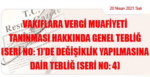 VAKIFLARA VERGİ MUAFİYETİ TANINMASI HAKKINDA GENEL TEBLİĞ