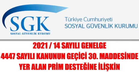 4447 sayılı Kanunun geçici 30. maddesinde yer alan prim desteği 1.4.2021 tarihinden itibaren geçerli olmak üzere 22.4.2021 tarihi itibarıyla yürürlüğe girmiş olup, uygulamanın usul ve esasları aşağıda açıklanmıştır.