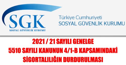 2021 / 21 Sayılı Genelge – 5510 Sayılı Kanunun 4/1-b Kapsamındaki Sigortalılığın Durdurulması