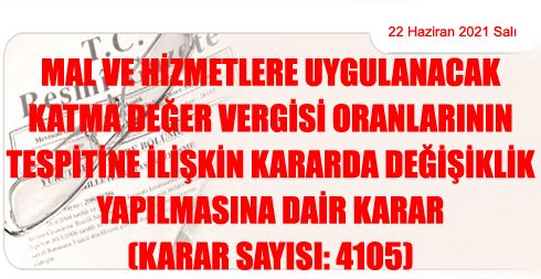 MAL VE HİZMETLERE UYGULANACAK KATMA DEĞER VERGİSİ ORANLARININ TESPİTİNE İLİŞKİN KARARDA DEĞİŞİKLİK YAPILMASINA DAİR KARAR