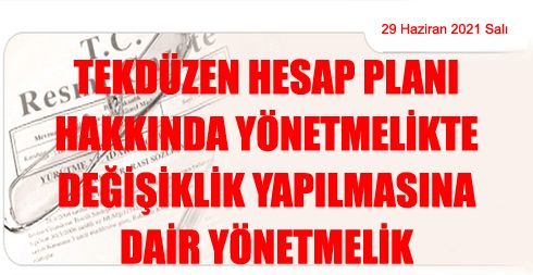 TEKDÜZEN HESAP PLANI HAKKINDA YÖNETMELİKTE DEĞİŞİKLİK