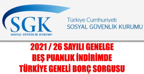 Buna göre, 5510 sayılı Kanunun 81. maddesinin birinci fıkrasının (ı) bendi uyarınca beş puanlık indirim uygulamasında işverenin Kuruma olan yasal ödeme süresi geçmiş sigorta primi, işsizlik sigortası primi, idari para cezası ve bunlara ilişkin gecikme cezası ve gecikme zammı borcu, 2021/Eylül ayına/dönemine ilişkin muhtasar ve prim hizmet beyannamesinden itibaren işyeri bazında değil, işverenin Türkiye genelindeki tüm işyerleri esas alınarak sorgulanacaktır.