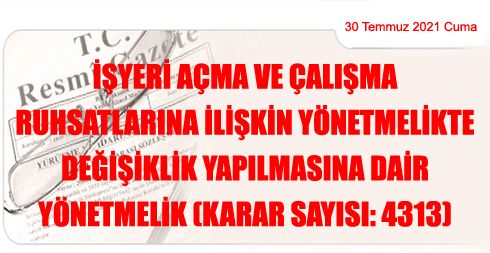 İŞYERİ AÇMA VE ÇALIŞMA RUHSATLARINA İLİŞKİN YÖNETMELİKTE DEĞİŞİKLİK YAPILMASINA DAİR YÖNETMELİK