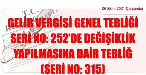 GELİR VERGİSİ GENEL TEBLİĞİ SERİ NO: 252’DE DEĞİŞİKLİK