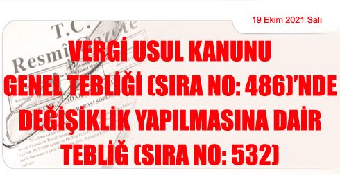 VERGİ USUL KANUNU GENEL TEBLİĞİ (SIRA NO: 486)’NDE DEĞİŞİKLİK