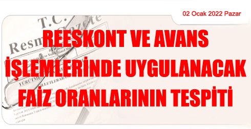 Reeskont ve Avans İşlemlerinde Uygulanacak Faiz Oranlarının Tespiti