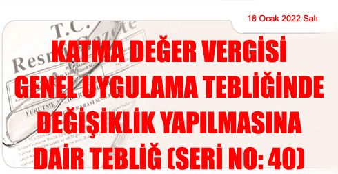 Katma Değer Vergisi Genel Uygulama Tebliğinde Değişiklik Yapılmasına Dair Tebliğ (Seri No: 40)