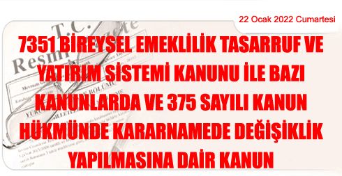 Kanun No. 7351 Kabul Tarihi: 19/1/2022