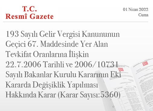 31.3.2022 TARİHLİ VE 5360 SAYILI CUMHURBAŞKANI KARARININ EKİ