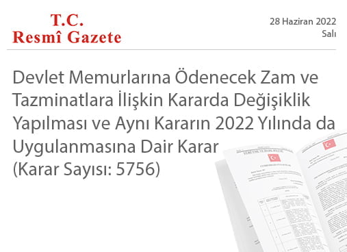 DEVLET MEMURLARINA ÖDENECEK ZAM VE TAZMİNATLARA İLİŞKİN KARARDA DEĞİŞİKLİK YAPILMASI VE AYNI KARARIN 2022 YILINDA DA UYGULANMASINA DAİR KARAR