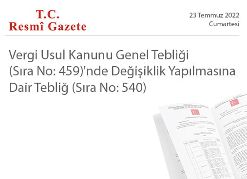 DEĞİŞİKLİK YAPILMASINA DAİR TEBLİĞ (SIRA NO: 540)