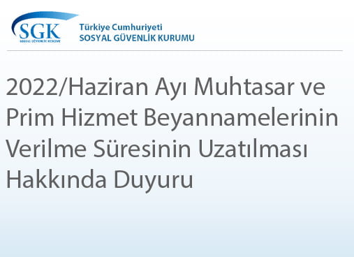 2022/Haziran Ayı Muhtasar ve Prim Hizmet Beyannamelerinin Verilme Süresinin