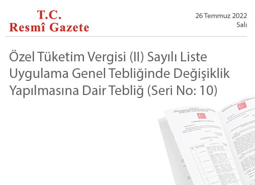 Özel Tüketim Vergisi (II) Sayılı Liste Uygulama Genel Tebliğinde Değişiklik Yapılmasına Dair Tebliğ (Seri No: 10)