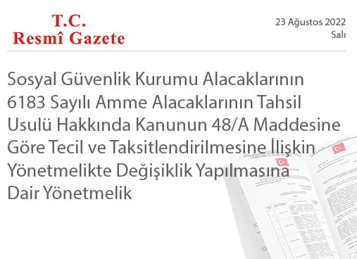 Home»Haberler»Sosyal Güvenlik Kurumu Alacaklarının 6183 Sayılı Amme Alacaklarının Tahsil Usulü Hakkında Kanunun 48/A Maddesine Göre Tecil ve Taksitlendirilmesine İlişkin Yönetmelikte Değişiklik Yapılmasına Dair Yönetmelik