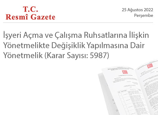 Home»Haberler»İşyeri Açma ve Çalışma Ruhsatlarına İlişkin Yönetmelikte Değişiklik Yapılmasına Dair Yönetmelik (Karar Sayısı: 5987)