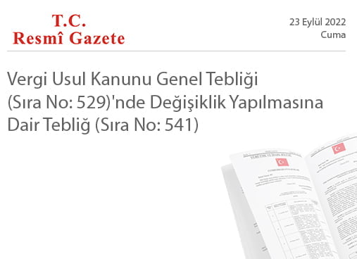 Vergi Usul Kanunu Genel Tebliği (Sıra No: 529)’nde Değişiklik Yapılmasına Dair Tebliğ (Sıra No: 541)