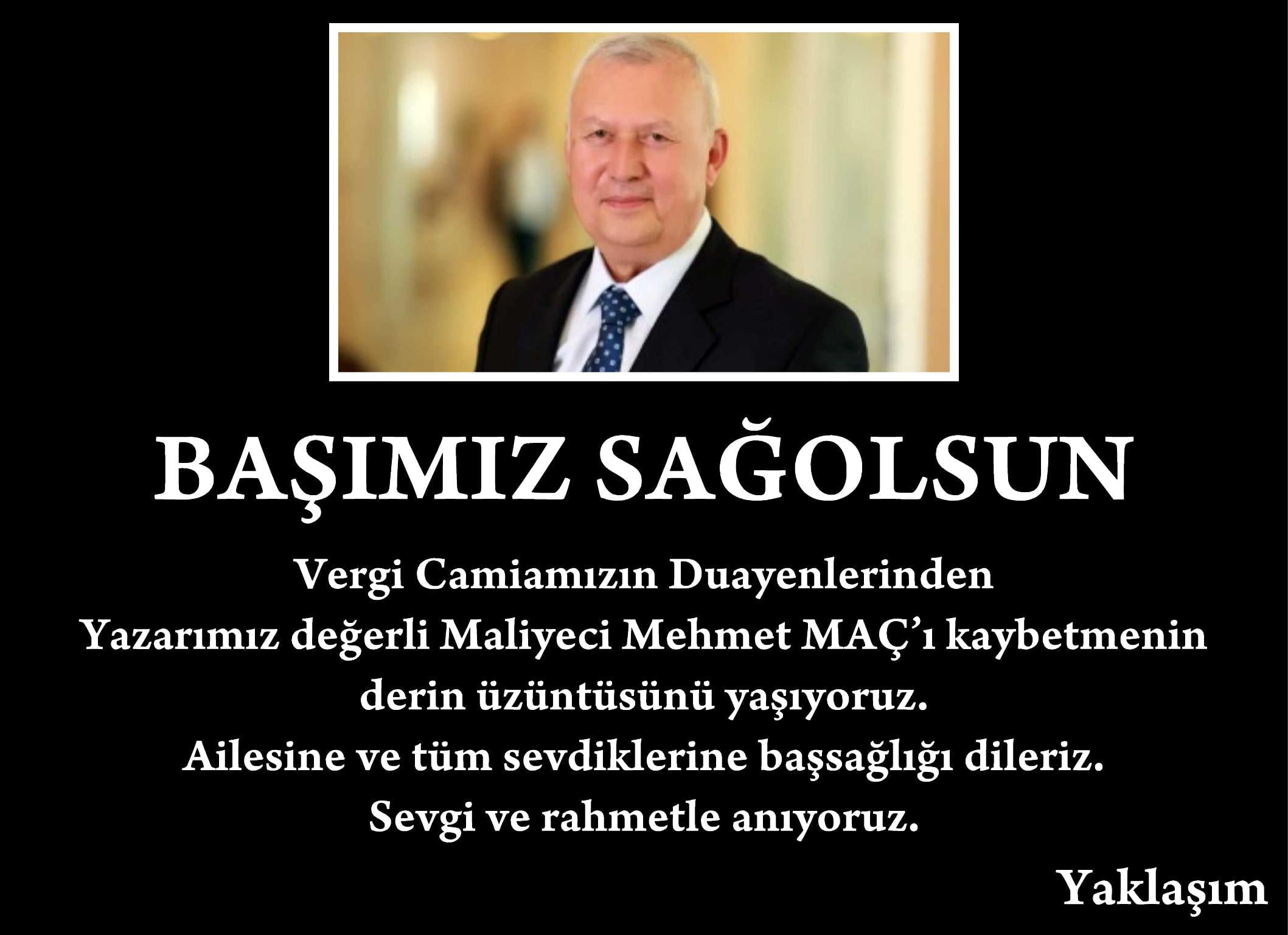 Yazarımız değerli Maliyeci Mehmet MAÇ’ı