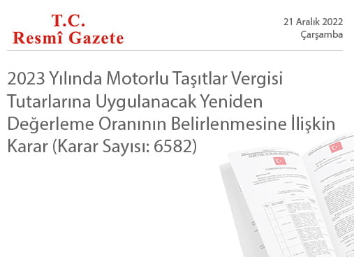 2023 yılında motorlu taşıtlar vergisi tutarlarına uygulanacak yeniden değerleme oranının belirlenmesine ilişkin ekli Kararın yürürlüğe konulmasına, 197 sayılı Motorlu Taşıtlar Vergisi Kanununun 10. maddesi gereğince karar verilmiştir.