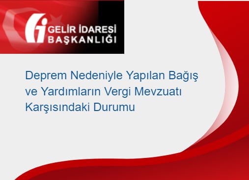 Merkez üssü Kahramanmaraş ili olan depremler sonrası genel hayatı olumsuz etkileyen şartların ortadan kaldırılması ve afetzede vatandaşlarımızın acil ihtiyaçlarının karşılanması için gelir ve kurumlar vergisi mükelleflerimizce bağış ve yardımlar yapılmaktadır.