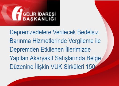 Konusu: Depremzedelere verilecek bedelsiz barınma hizmetlerinin vergisel sonuçları ile depremden etkilenen illerimizde yapılan akaryakıt satışlarındaki belge düzeni hakkında