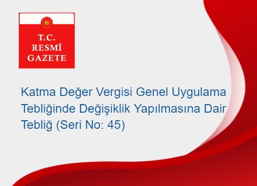 Katma Değer Vergisi Genel Uygulama Tebliğinde Değişiklik Yapılmasına Dair Tebliğ (Seri No: 45)