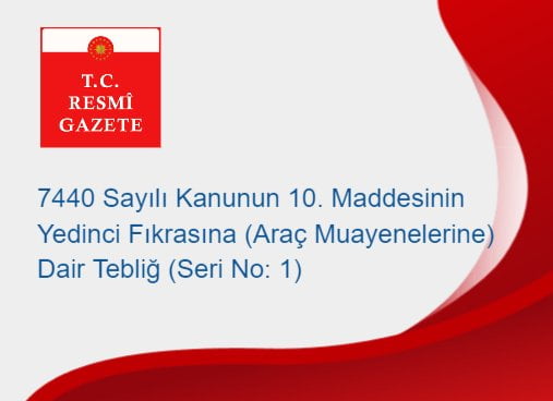 7440 Sayılı Kanunun 10. Maddesinin Yedinci Fıkrasına (Araç Muayenelerine) Dair Tebliğ (Seri No: 1)