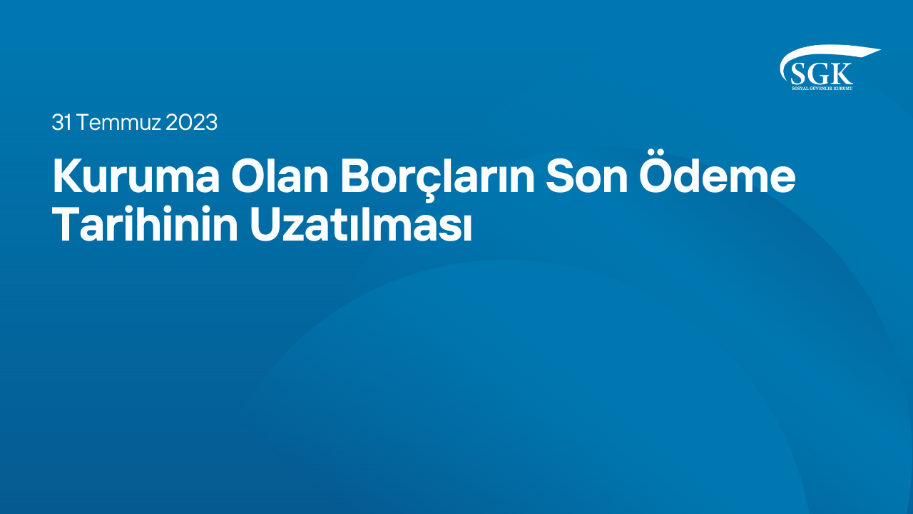 Meydana gelen bu yoğunluktan dolayı sigortalı ve işverenlerimizin mağduriyet yaşamamaları için son ödeme tarihi 31.07.2023 olan cari dönem prim borçları, yapılandırma borçları ve diğer her türlü borçlarının son ödeme süresi 5510 sayılı Kanunun 100’üncü maddesinin 4 üncü fıkrasına dayanılarak 03.08.2023 tarihi saat 23:59’a kadar uzatılmış olup, bu tarihe kadar yapılacak ödemeler yasal süresi içerisinde yapılmış sayılacaktır.
