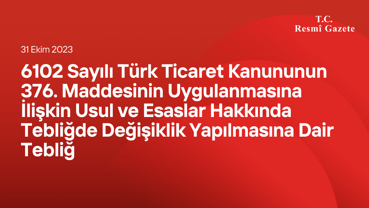 MADDE 1- 15/9/2018 tarihli ve 30536 sayılı Resmî Gazete’de yayımlanan 6102 Sayılı Türk Ticaret Kanununun 376 ncı Maddesinin Uygulanmasına İlişkin Usul ve Esaslar Hakkında Tebliğin geçici 1 inci maddesinde yer alan “1/1/2024” ibaresi “1/1/2025” olarak değiştirilmiştir.