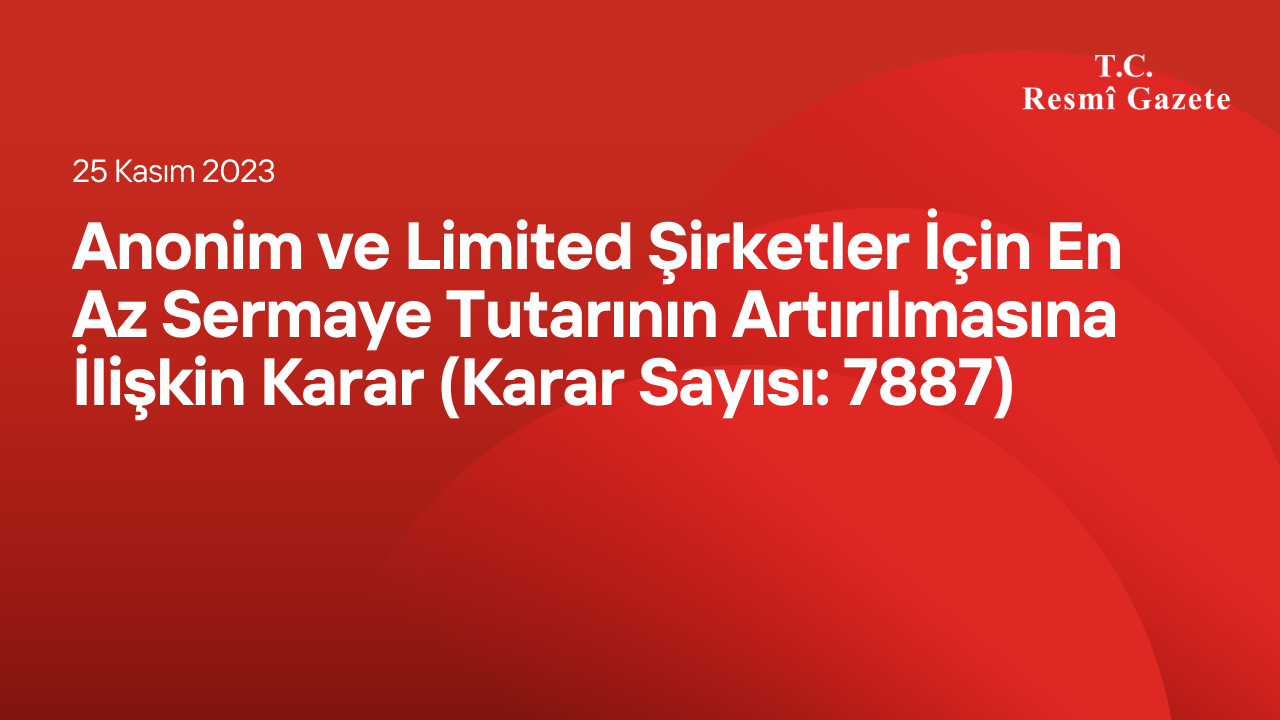 Anonim ve Limited Şirketler İçin En Az Sermaye Tutarının Artırılmasına İlişkin Karar (Karar Sayısı: 7887)