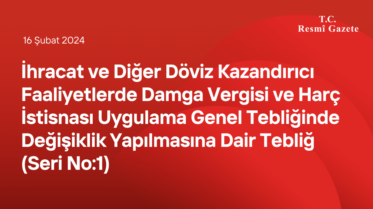 MADDE 1- 18/5/2017 tarihli ve 30070 sayılı Resmî Gazete’de yayımlanan İhracat ve Diğer Döviz Kazandırıcı Faaliyetlerde Damga Vergisi ve Harç İstisnası Uygulama Genel Tebliğinin 5 inci maddesinin birinci fıkrasının (a) bendinde yer alan “Kalkınma Bakanlığınca yayımlanan” ibaresi “Cumhurbaşkanı kararı ile yürürlüğe konulan” şeklinde değiştirilmiş, “uluslararası ihaleye çıkarılanların ihalesini kazanan veya” ibaresi ile aynı bendin (i) alt bendinde yer alan “uluslararası ihalelerde tamamı üzerinden, yabancı para ile finanse edilenlerde ise” ibaresi yürürlükten kaldırılmıştır.