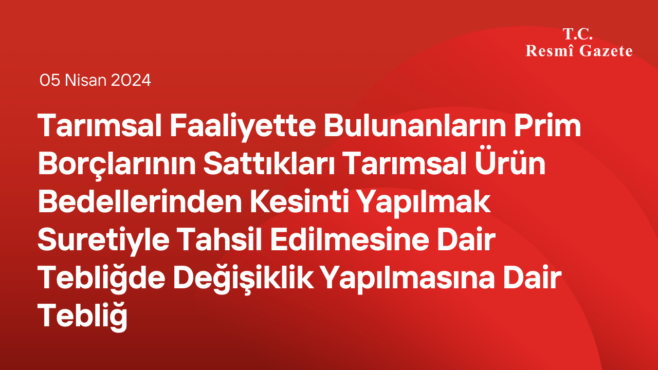 MADDE 1- 1/3/2013 tarihli ve 28574 sayılı Resmî Gazete’de yayımlanan Tarımsal Faaliyette Bulunanların Prim Borçlarının Sattıkları Tarımsal Ürün Bedellerinden Kesinti Yapılmak Suretiyle Tahsil Edilmesine Dair Tebliğin geçici 3 üncü maddesinin birinci fıkrasında yer alan “1/1/2024” ibaresi “31/12/2028” olarak değiştirilmiştir.