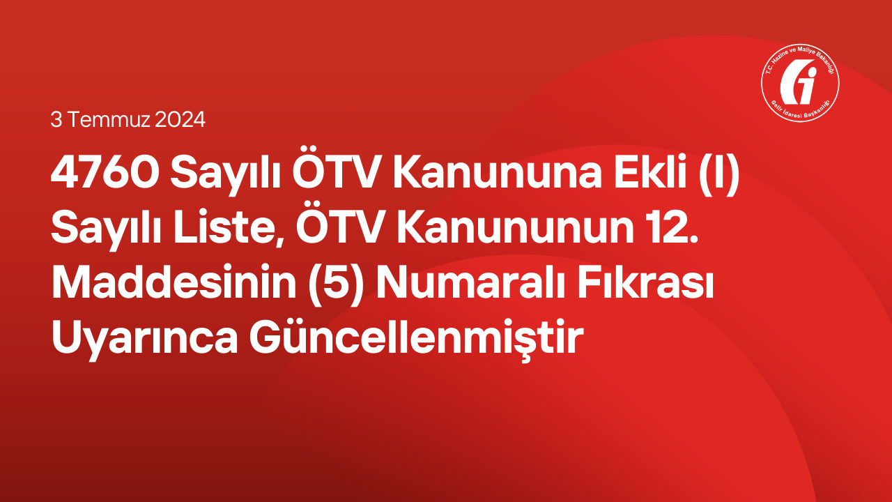 4760 Sayılı ÖTV Kanununa Ekli (I) Sayılı Liste, ÖTV Kanununun 12 nci Maddesinin (5) Numaralı Fıkrası Uyarınca Güncellenmiştir