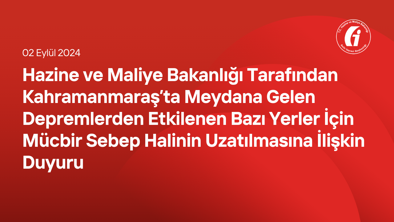 Hazine ve Maliye Bakanlığı Tarafından Kahramanmaraş’ta Meydana Gelen Depremlerden Etkilenen Bazı Yerler İçin Mücbir Sebep Halinin Uzatılmasına İlişkin Duyuru