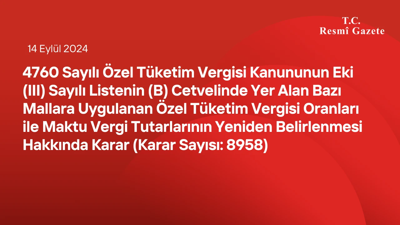 Karar Sayısı: 8958 Karar Tarihi: 13 Eylül 2024