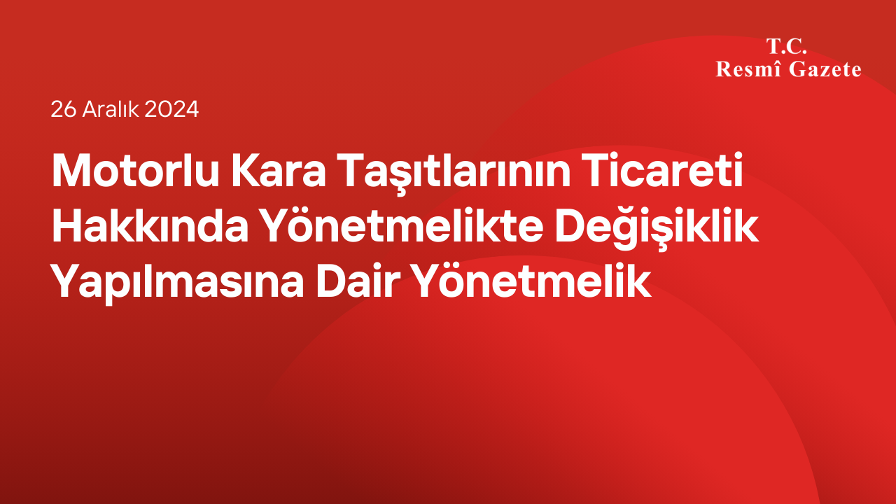 MOTORLU KARA TAŞITLARININ TİCARETİ HAKKINDA YÖNETMELİKTE DEĞİŞİKLİK YAPILMASINA DAİR YÖNETMELİK