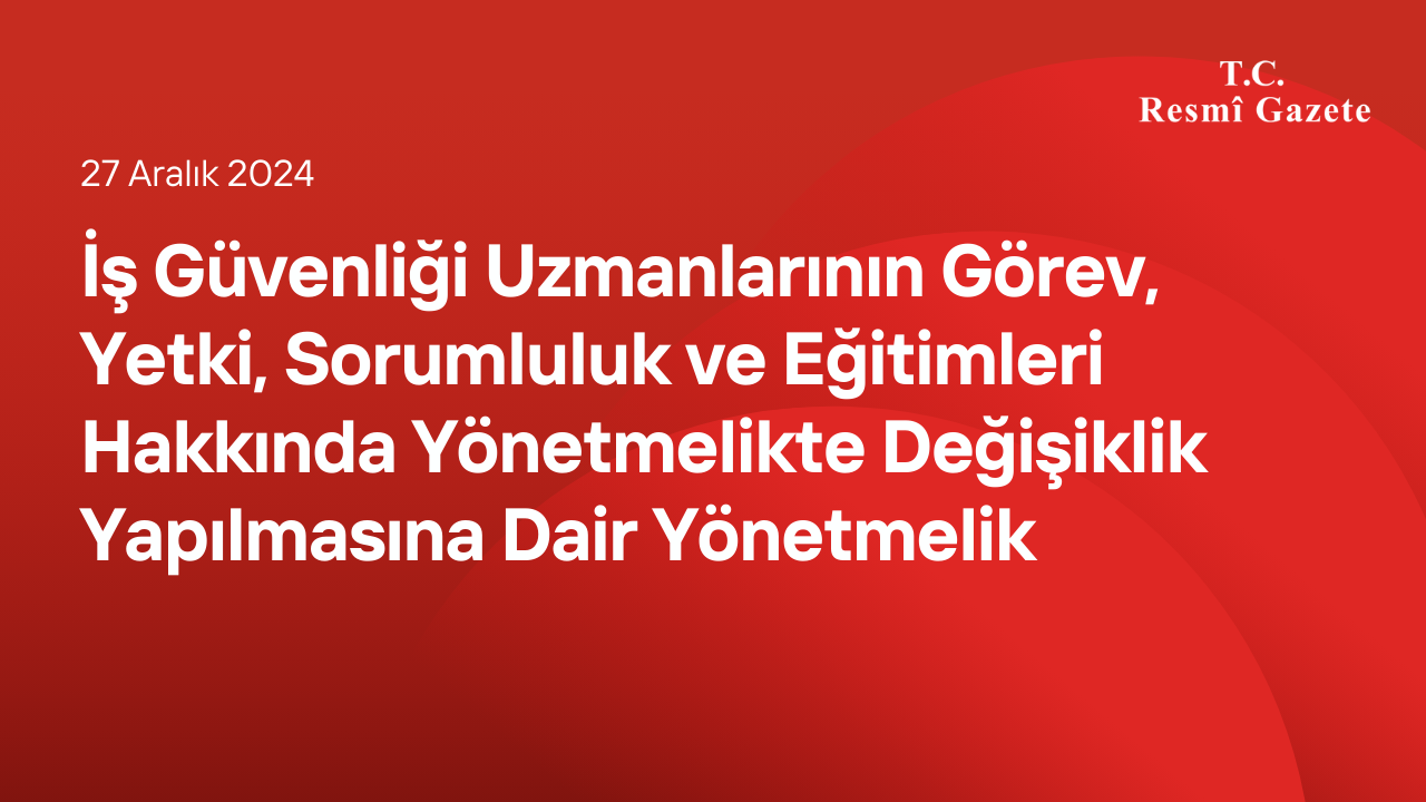 Home»Haberler»İş Güvenliği Uzmanlarının Görev, Yetki, Sorumluluk ve Eğitimleri Hakkında Yönetmelikte Değişiklik Yapılmasına Dair Yönetmelik